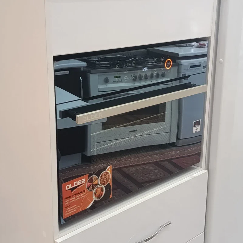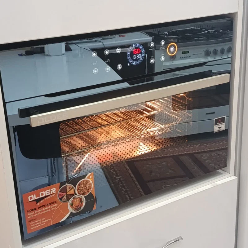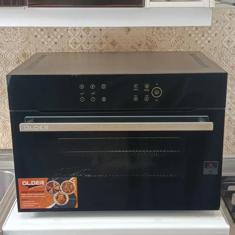 آون توستر الدر مدل الترا پلاس با دسته درب آلومینیومی دارای ظرفیت 55 لیتر واقعی است. در این توستر می توانید سه عدد قالب پیتزا با قطر 30سانتیمتر در سه طبقه و یا 6 عدد قالب پیتزا با قطر 23 در سه طبقه قرار دهید.همراه این توستر دو عدد قالب پیتزا به قطر 30 سانت ،دو عدد شلف،یک عدد توری میوه خشک کن،یک سینی لعابی،سیخ جوجه گردان، وجود دارد توستر قابلیت استفاده بصورت توکار با حفظ فاصله از اطراف را نیز دارد.همچنین با داشتن چنین توستری شما نیاز به تهیه سرخ کن بدون روغن نیستید و انواع مواد غذایی را می توان در این توستر سرخ کرد.پخت کیک و شیرینی،لازانیا و پیتزا و انواع نان حجیم ،مرغ و ماهی را میتوان بصورت حرفه ای در این دستگاه اماده کرد.این توستر دارای یک پنل لمسی حرفه ای است.در این پنل گزینه های جدا گانه ای برای فن،المنت،جوجه گردان و لامپ وجود دارد که در اکثر توسترهای موجود در بازاراین قابلیت وجود ندارد همچنین پنل دارای 12 برنامه پخت از پیش تعیین شده و 16 حافظه دخیره برنامه است.همچنین در توستر بصورت 12 حالت می توانید فن،المنت و جوجه گردان را بصورت تکی و همزمان فعال کنید که این ویژگی منحصر بفرد این توستر می باشد در این توستر می توانیم فرآیند یخ زدایی و خشک کردن میوه نیز بخوبی انجام دهیم این توستر علاوه بر فن کانوکشن دارای فن خنک کننده زیر پنل می باشد.همچنین با توجه به اینکه پخت برخی از مواد غذایی به وجود آب نیاز دارند شما می توانید داخل سینی توستر 3 لیوان آب بریزیدتا رسپی مورد نظر بخوبی انجام شود باشد.بدنه داخلی این توستر تمام لعاب می باشد و جنس طبقات آن ازمیله های استیل است همچنین فاصله طبقات با هم و با المنت بصورت حرفه ای طراحی شده است بگونه ای که هر 4 طبقه آن قابل استفاده می باشند.المنت کف این توستر مخفی است .در این توستر یک فن کانوکشن قوی در سمت راست قرار دارد و یک عدد لامپ پر نور و سنسور کنترل حرارت نیز در سمت راست وجود دارد .درب این توستر بصورت دوجداره طراحی شده است.جنس دستگیره توستر از آلومینوم ساخته شده و بین درب و دستگیره از با کلیت استفاده شده. و به این ترتیب درب توستر داغ نمی شود.همچنین پنل دارای قفل کودک برای است.عایق بندی این توستر از جنس الیاف سرامیکی می باشد همچنین این توستر در اطراف درب دارای واشر سیلیکونی است