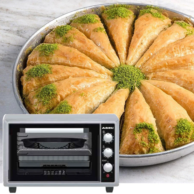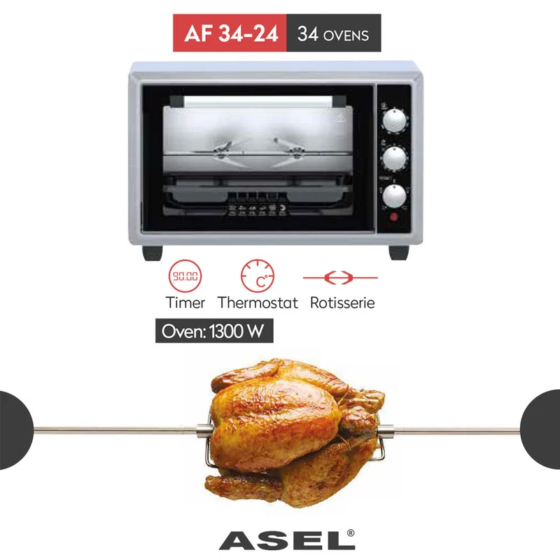 – ساخت ترکیه – آسل – سیستم جوجه گردان بصورت چرخشی کامل پخت – دارای ولوم ترموستات از 0 تا 320 درجه سانتیگراد – دارای ولوم تایمر تا 90 دقیقه – دارای ولوم بمنظور استفاده در 4 حالت ( ر