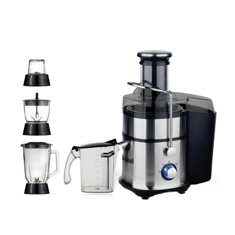 آبمیوه گیری 4 کاره استیل دارای توان حداکثر 800 وات (آبمیوه گیر- مخلوط کن- آسیاب – خردکن)